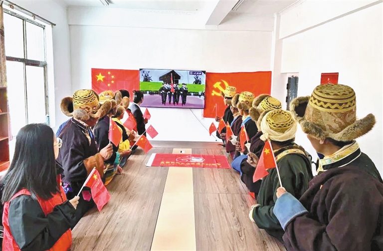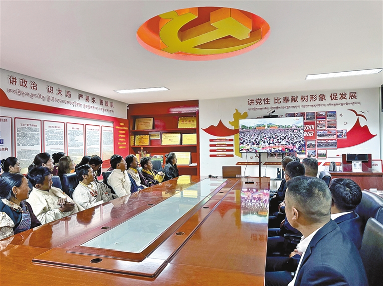 日喀則市謝通門縣仁欽則鄉(xiāng)倫珠孜村的村民們集中觀看了現(xiàn)場直播,現(xiàn)場不時傳出熱烈掌聲。老黨員仁增多吉感慨萬千:“我深切體會到了沒有中國共產黨就沒有社會主義新西藏,就沒有我們今天的幸福生活。我將始終維護祖國統(tǒng)一,加強民族團結,堅定不移聽黨話、矢志不渝跟黨走?!?/p>