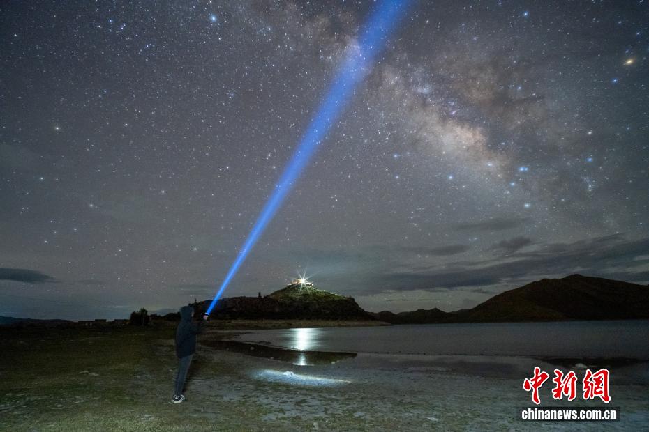 西藏山南羊卓雍錯(cuò)日托寺,因?yàn)楹0胃?、遠(yuǎn)離城市光污染,是理想的觀星之地。近日,海拔4400多米的寺廟夜空清澈,銀河清晰可見(jiàn),璀璨星辰與羊卓雍錯(cuò)相映成趣,吸引游客和攝影愛(ài)好者觀星拍攝。圖為游客在羊卓雍錯(cuò)湖邊與銀河“打卡”。江飛波 攝