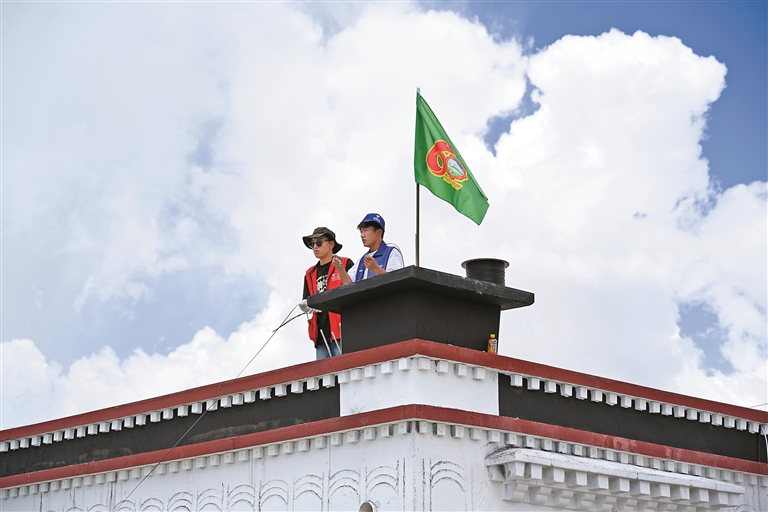 記者來到森嘎村,映入眼簾的是嶄新的藏式民居整齊排列,國旗在家家戶戶的屋頂迎風飄揚。曾經(jīng)破敗的進村道路已煥然一新,“森嘎歡迎您”的標牌引人注目。