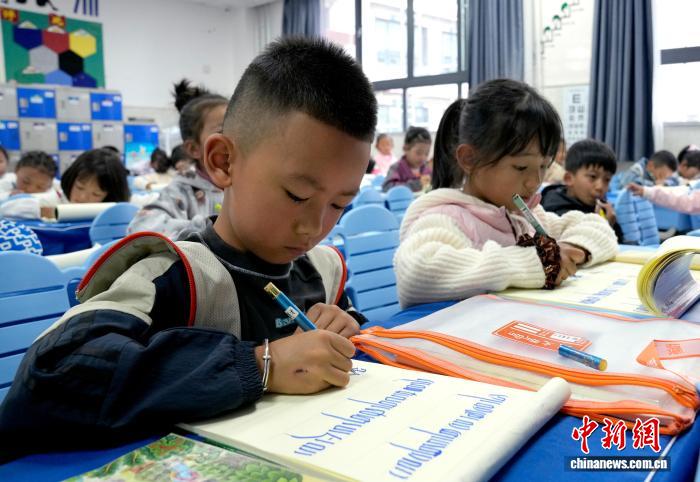 9月1日,拉薩市第一小學(xué)一年級(jí)二班的學(xué)生們?cè)诓卣Z文課上書寫藏文。近日,西藏拉薩市秋季學(xué)期開學(xué),各項(xiàng)教學(xué)工作有序開展。中新社記者 李林 攝