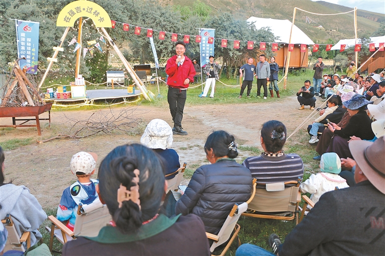 傍晚時(shí)分,強(qiáng)吉村篝火晚會(huì)開啟。村民身著盛裝,攜手跳起鍋莊,網(wǎng)絡(luò)達(dá)人紛紛舉起相機(jī)加入行列。歌聲、笑聲、鼓聲融為一體,久久回蕩。