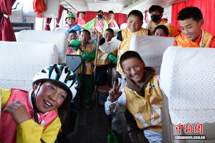 圖為參賽騎手乘大巴前往起跑點。中新社記者 貢嘎來松 攝