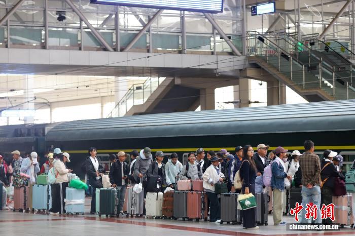 圖為拉薩火車(chē)站,學(xué)生排隊(duì)等候上車(chē)。武春燕 攝
