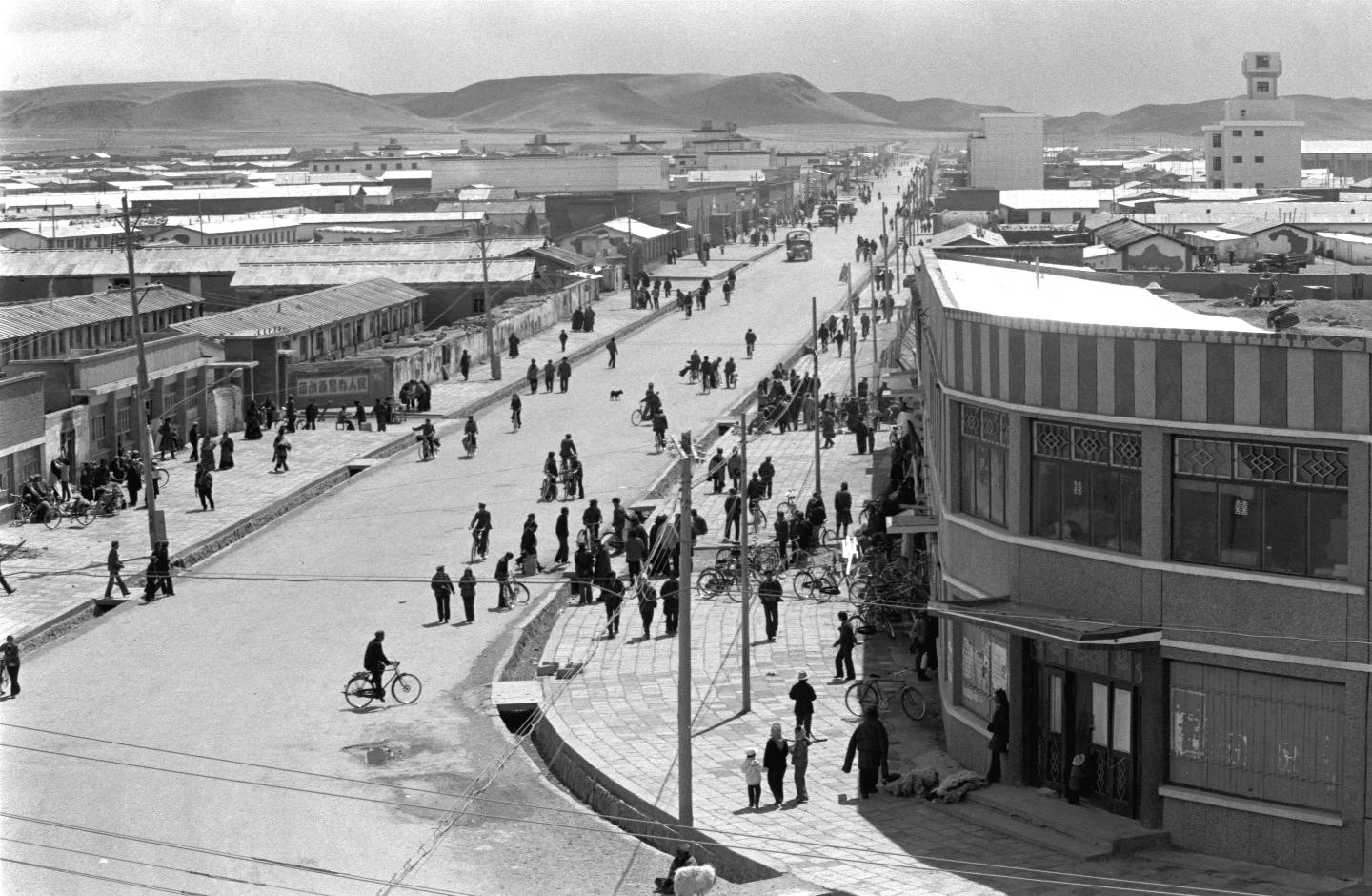 連接西藏和內(nèi)地的交通大動脈青藏公路的修筑和暢通,給西藏的經(jīng)濟(jì)發(fā)展帶來了巨大的變化。圖為1987年青藏公路線上的西藏那曲鎮(zhèn)。