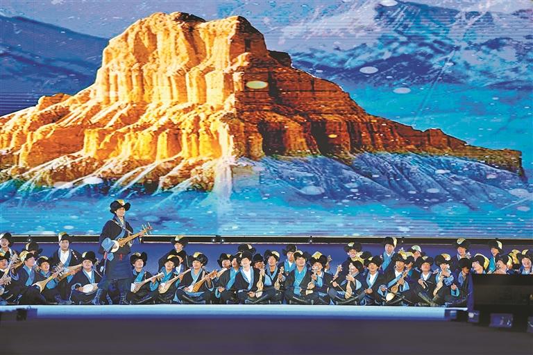開幕式通過“線上直播+現(xiàn)場觀演”模式,為現(xiàn)場各界來賓、干部群眾及線上觀眾,呈現(xiàn)了一場內(nèi)容豐富、形式多元、內(nèi)涵深刻的視聽盛宴。此次演出時長約80分鐘,投入演職人員300余人次,共呈現(xiàn)13個特色節(jié)目。演出以弘揚(yáng)優(yōu)秀傳統(tǒng)文化和鑄牢中華民族共同體意識為基調(diào),大膽革新藝術(shù)表達(dá)形式,將“音、舞、詩、畫”巧妙融合,并鑲嵌濃郁的阿里地域文化元素,通過多元文化交融的舞臺敘事,生動詮釋中華民族“多元一體、和諧共生”的深刻內(nèi)涵,實(shí)現(xiàn)歷史與人文的激情碰撞。