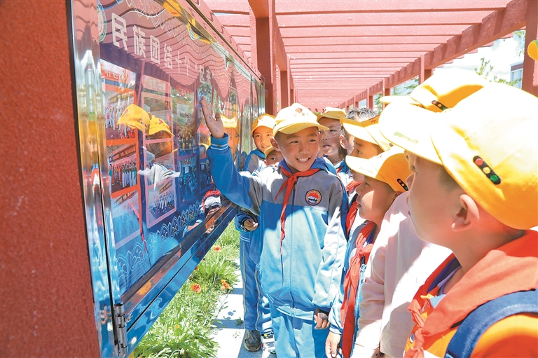 拉薩市墨竹工卡縣南京實(shí)驗(yàn)小學(xué)學(xué)生參觀“民族團(tuán)結(jié)教育主題公園”主題苑。記者 唐斌 通訊員 洛克 攝