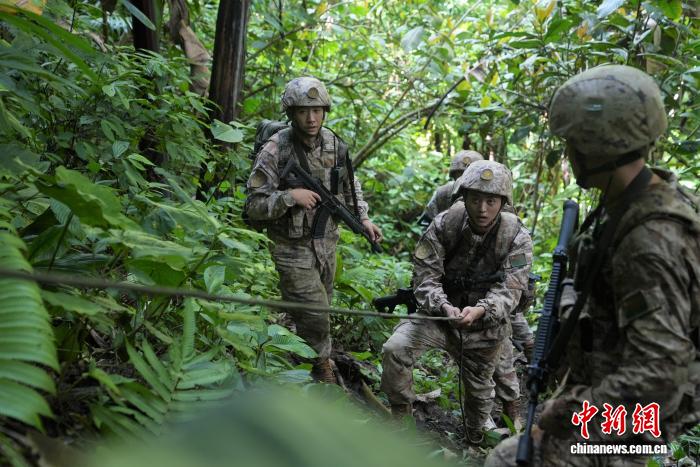 圖為巡邏官兵穿越密林區(qū)。付麗豪 攝