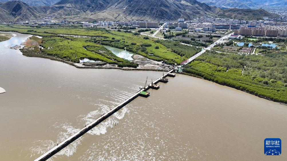 建設(shè)中的薩熱路跨江大橋(無人機(jī)照片,9月26日攝)。新華社記者 晉美多吉 攝
