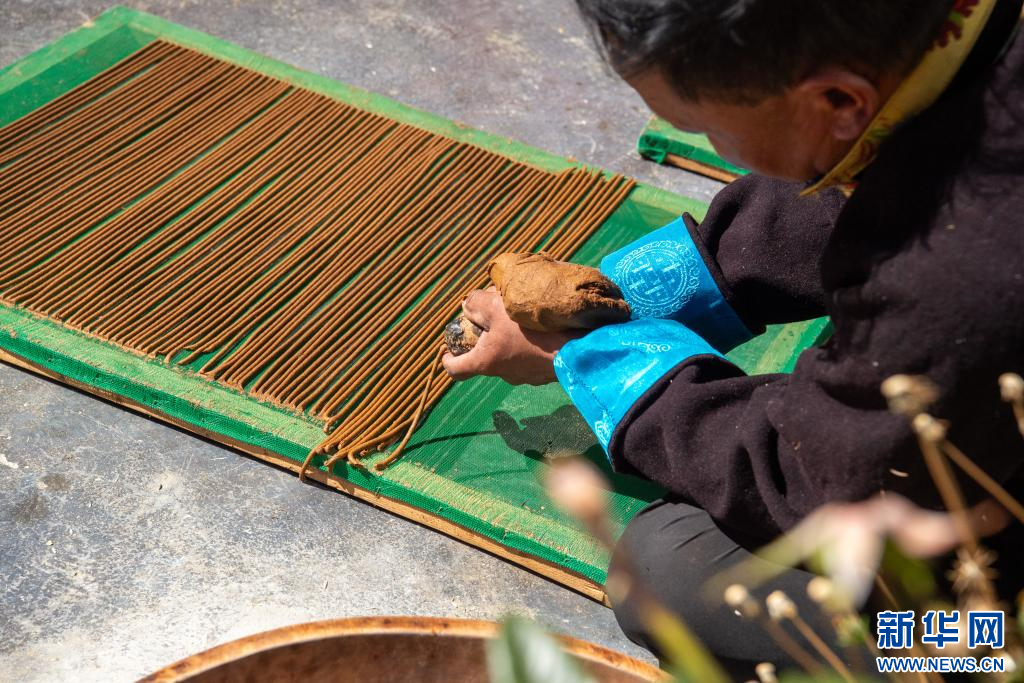 10月17日,西藏拉薩市尼木縣吞巴鎮(zhèn)吞達村縣級非遺傳承人普布次仁在制作藏香。新華網(wǎng) 旦增努布 攝