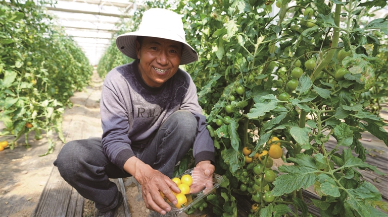 墨竹工卡縣塔巴村2組村民尼瑪正在大棚里照料四色圣女果。“在這里工作每月平均能掙4200元,還能學(xué)到特色果蔬的種植技術(shù)?!彼χf。目前,園區(qū)每天提供固定崗位13個,通過土地流轉(zhuǎn)、勞務(wù)用工等方式,已帶動周邊54戶群眾增收。近年來,墨竹工卡縣現(xiàn)代農(nóng)業(yè)產(chǎn)業(yè)園區(qū)累計向當(dāng)?shù)厝罕娭Ц锻恋亓鬓D(zhuǎn)費(fèi)625.33萬元,實發(fā)勞務(wù)費(fèi)累計400萬元。