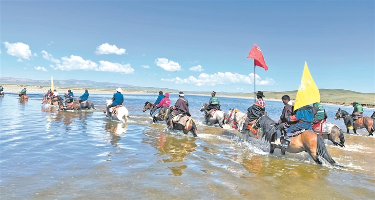 圖為三江源國家公園生態(tài)管護員在巡護途中。