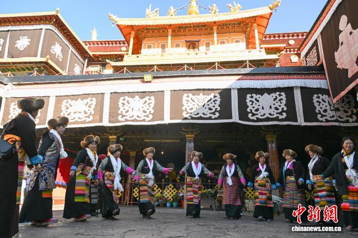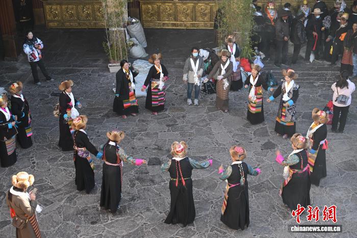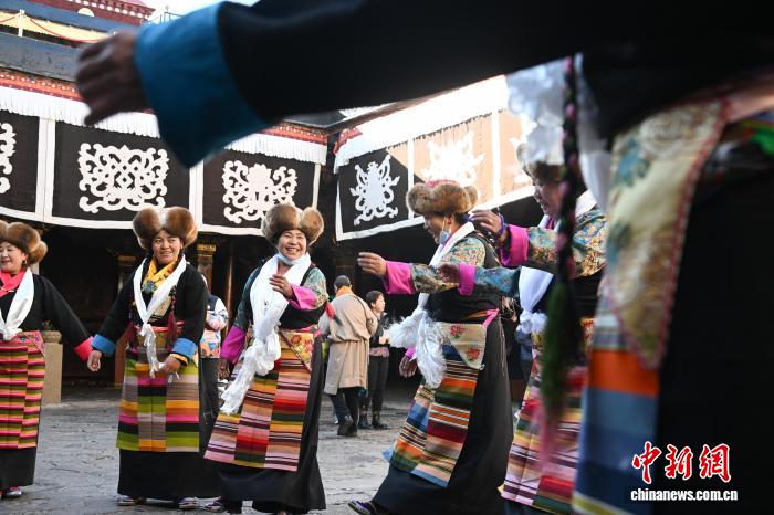 隨著藏歷十月十五白拉姆節(jié)(又稱“仙女節(jié)”)臨近,11月28日,西藏拉薩的婦女們?cè)诖笳阉绿陚鹘y(tǒng)舞蹈后休息,迎接“仙女節(jié)”到來(lái)。“仙女節(jié)”即吉祥天母節(jié),藏語(yǔ)稱“白來(lái)日追”。相傳藏傳佛教最高護(hù)法神之一班丹拉姆的女兒白拉姆,不顧母親的反對(duì)與赤尊贊私定終身,班丹拉姆一怒之下將赤尊贊趕到拉薩河南岸,規(guī)定二人僅每年的藏歷十月十五日相見(jiàn)。中新社記者 貢嘎來(lái)松 攝