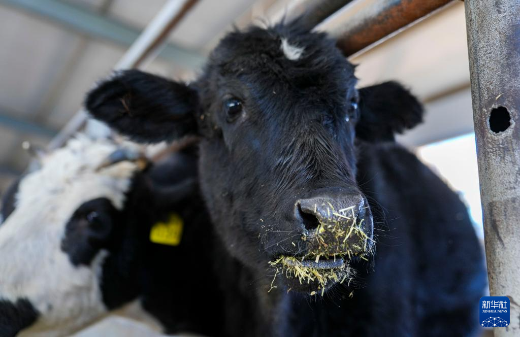 12月3日,克隆樟木牛母犢在西藏動物疫控中心(區(qū)畜牧總站)曲水實驗站牛場吃草料。新華社記者 丁增尼達 攝