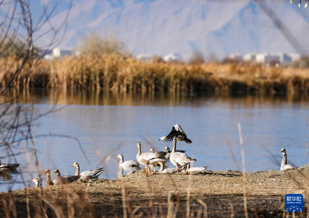12月20日,斑頭雁在拉魯濕地休憩。新華社記者 晉美多吉 攝