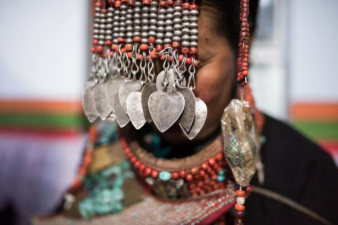 過去繁榮的商道貿(mào)易,讓這里積累了華麗的服飾與耀眼的寶石,普蘭當(dāng)?shù)厝藢⑦@些珍寶變成節(jié)日慶典的華麗盛裝,這樣一套四五十斤的“宣”服飾,除去本身的價值,背后更積淀了千百年的人文價值,用價值連城、移動的人民幣來形容一點也不夸張。