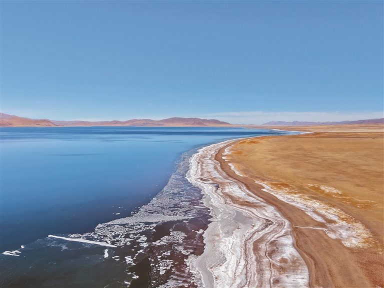 4只、7只、13只……藏原羚矯健的身影接連閃現(xiàn),照片在群里刷屏。緊接著,鏡面般澄澈的蓬錯(cuò)映入眼簾,湖岸線沿著317國道蜿蜒舒展。