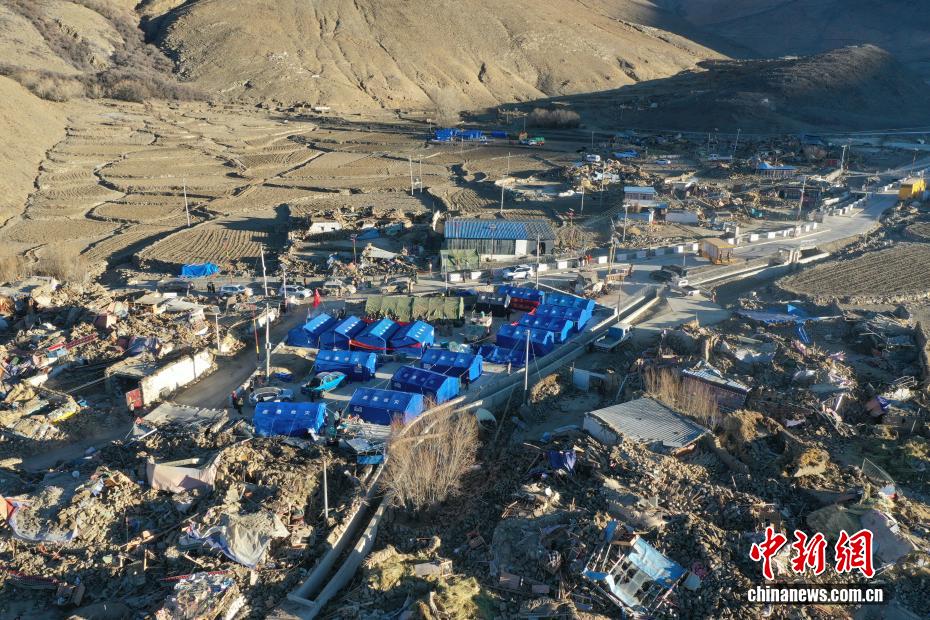 2025年1月7日,西藏日喀則市定日縣發(fā)生6.8級地震,造成重大人員傷亡。地震發(fā)生后,30天內(nèi)完成民房重建規(guī)劃、選址、設(shè)計(jì),90天內(nèi)完成災(zāi)后恢復(fù)重建總體方案編制和報(bào)審,震后100天內(nèi)進(jìn)入項(xiàng)目全面實(shí)施階段,220天實(shí)現(xiàn)災(zāi)后恢復(fù)重建首批入住目標(biāo),295天實(shí)現(xiàn)重建民房、維修加固民房基本建成并交付受災(zāi)民眾,在海拔4300米以上極度缺氧、建材短缺、施工力量薄弱的地震災(zāi)區(qū),創(chuàng)造了“當(dāng)年受災(zāi)、當(dāng)年入住”的重建奇跡。如今,民眾生產(chǎn)生活恢復(fù)秩序,他們將在新居內(nèi)迎接第一個(gè)日喀則農(nóng)事新年。圖為2025年1月8日,西藏自治區(qū)定日縣長所鄉(xiāng)古榮村,安置點(diǎn)的帳篷。(無人機(jī)照片)貢嘎來松 攝