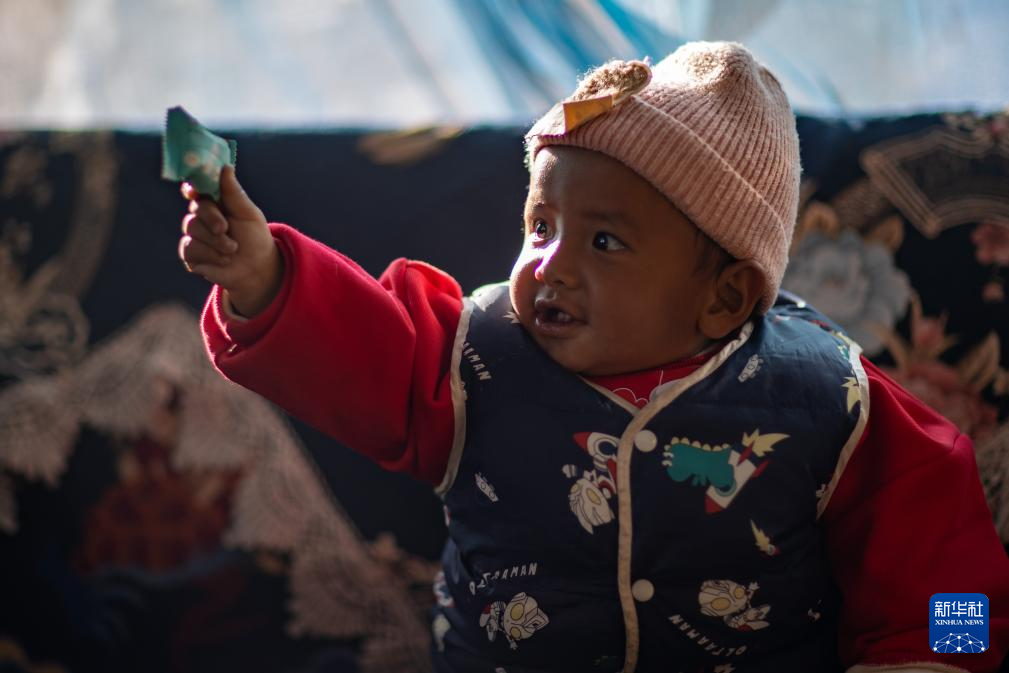 1月5日,在西藏定日縣長(zhǎng)所鄉(xiāng)雜村,母親朋瓊在家中逗弄次仁拉巴。新華社記者 姜帆 攝