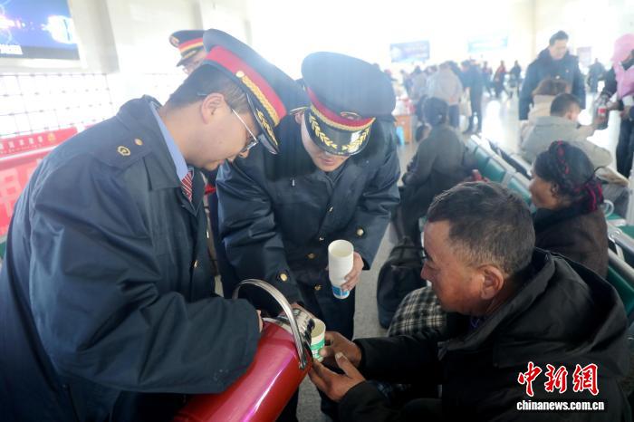 墨香未盡,暖意更濃。候車大廳里,黨員志愿者、“小花朵”青年志愿者化身“天路格?;ā?,穿梭在旅客中間。他們手捧福字送上祝福,端來(lái)熱氣騰騰的酥油茶、甜茶,用濃郁奶香驅(qū)散高原寒意,撫平旅途疲憊。