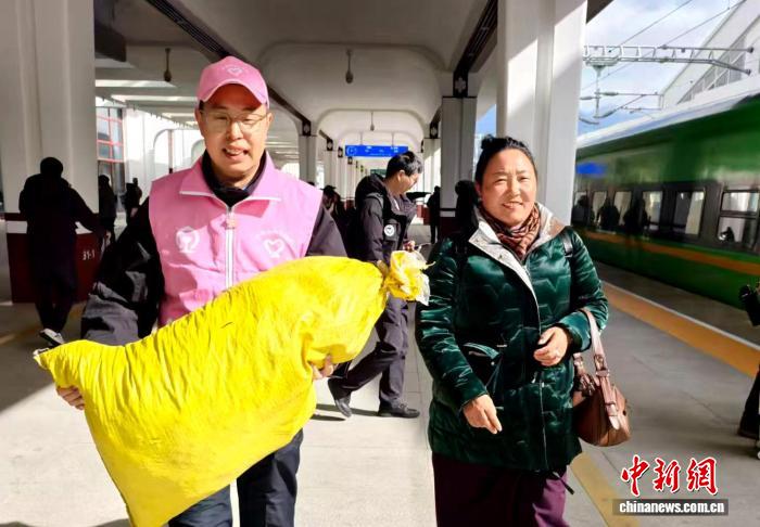 圖為青年志愿者幫扶旅客。拉薩火車站供圖