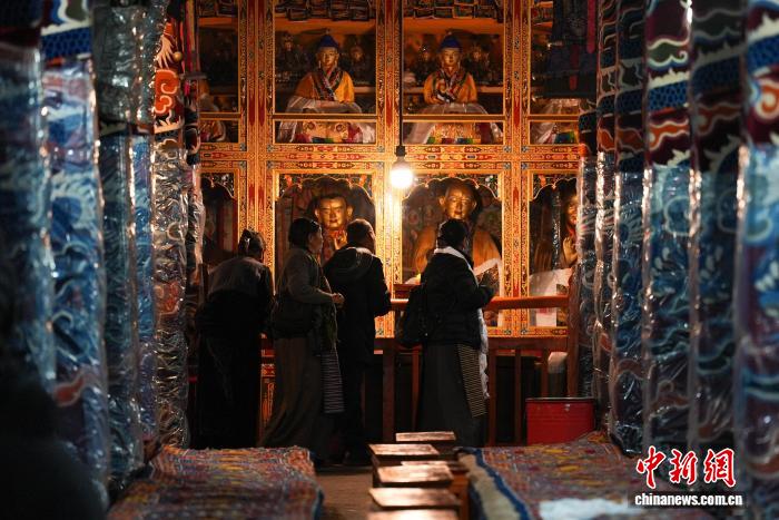 2月25日,藏歷新年期間,西藏拉薩哲蚌寺迎來(lái)大批信眾與游客。哲蚌寺始建于1416年,為藏傳佛教格魯派六大寺院之一,歷史文化底蘊(yùn)深厚,是重要的宗教文化場(chǎng)所。當(dāng)日,不少信眾和游客前來(lái)禮佛游覽,感受寺院獨(dú)特的人文氛圍與宗教文化氣息。圖為哲蚌寺主供佛強(qiáng)巴佛。貢確 攝