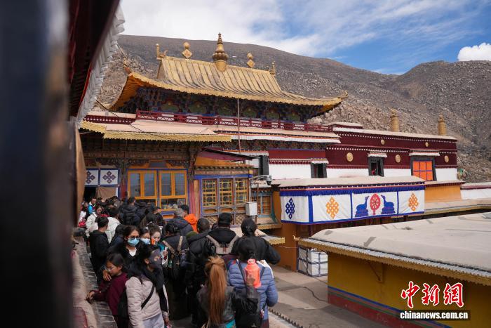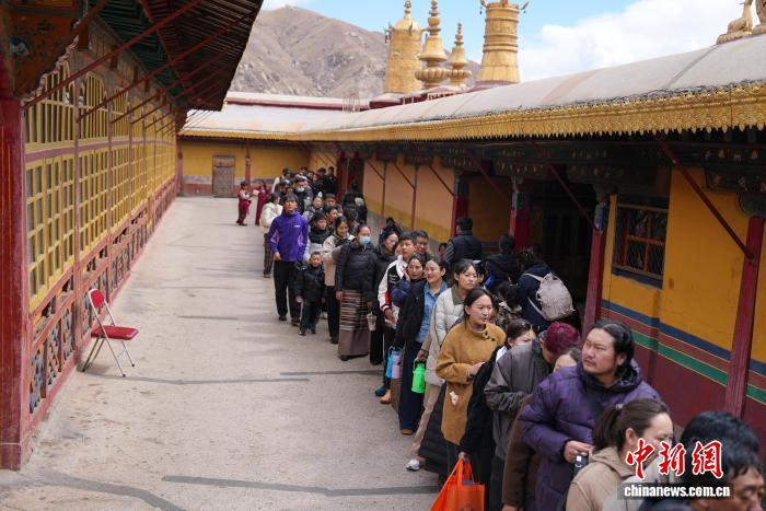 圖為信眾在哲蚌寺內(nèi)有序排隊(duì)朝拜。貢確 攝