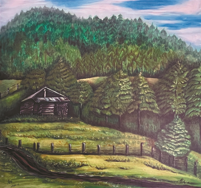圖為唐瑟達(dá)娃作品《魯朗風(fēng)光·其一》。記者 盧文靜 攝
