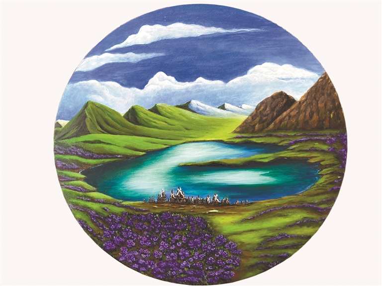 唐瑟達(dá)娃的藝術(shù)旅程,從父親繪制的藏柜旁出發(fā),穿越江南的煙雨與拉薩的日光,深入傳統(tǒng)繪畫(huà)藝術(shù)的博大精深,最終又回歸到高原的群山、江河與普通人的笑臉上。這位“清澈的明月”,依然在屬于她的藝術(shù)道路上從容行走。她的目光清澈,腳步堅(jiān)定,用那支蘸滿了生活色彩與生命熱情的畫(huà)筆繼續(xù)歌唱,歌唱她眼中那個(gè)真實(shí)、生動(dòng)、和美的西藏。