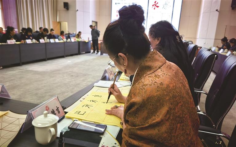 婦女代表在筆墨書(shū)香中感受中華優(yōu)秀傳統(tǒng)文化魅力。