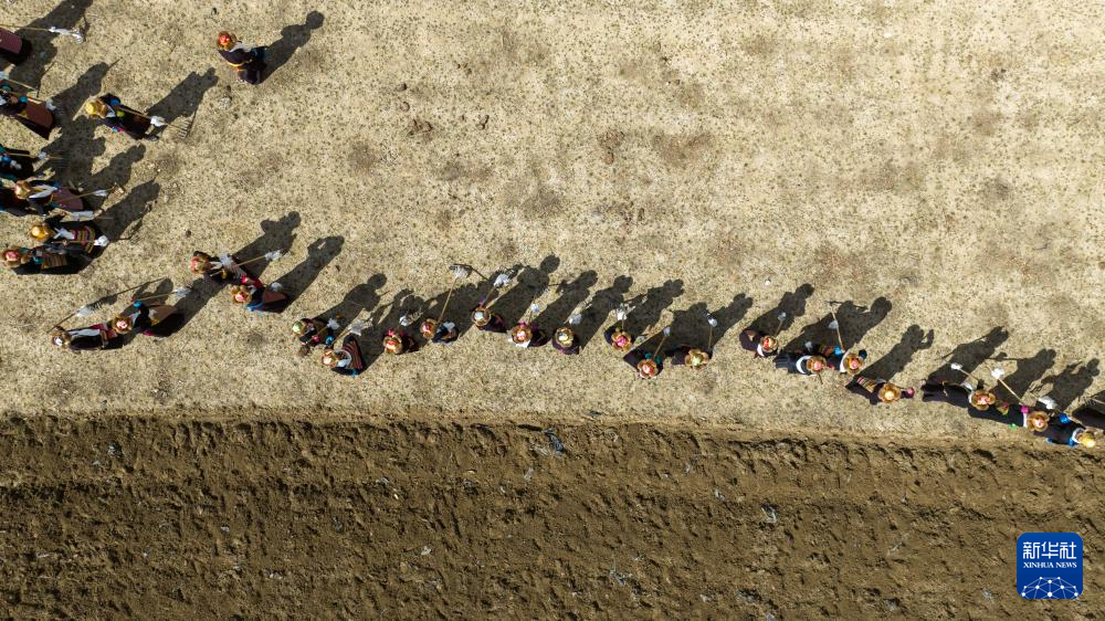 3月16日,西藏山南市結(jié)巴鄉(xiāng)結(jié)巴村村民舉行春耕儀式。新華社記者 晉美多吉 攝