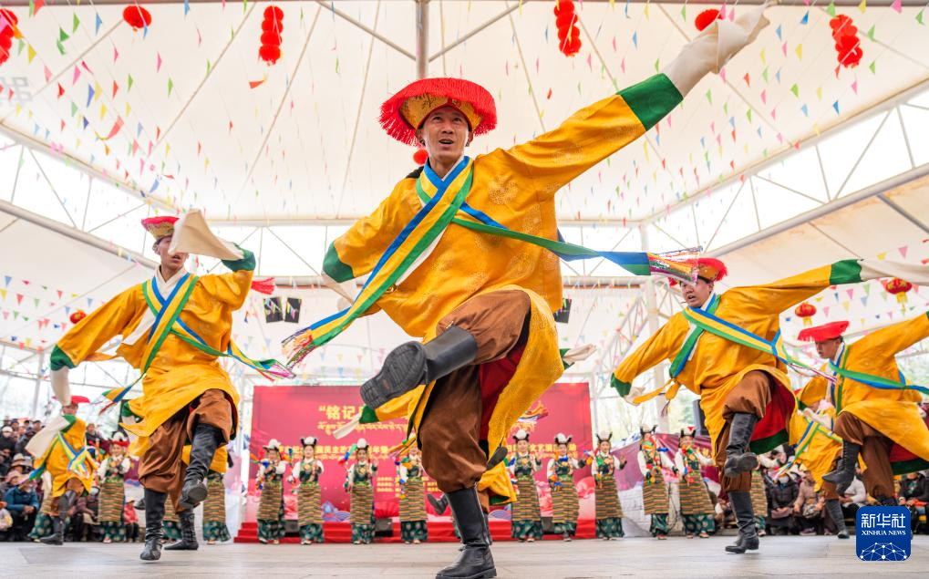 3月28日,演員在拉薩市宗角祿康公園內(nèi)舉辦的西藏百萬農(nóng)奴解放紀(jì)念日群眾演出活動上載歌載舞。新華社記者 丁增尼達(dá) 攝