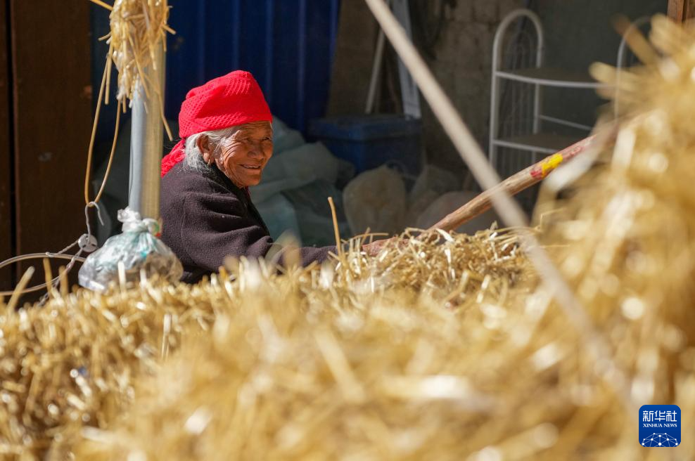 嘎多在家里整理草料(3月25日攝)。新華社記者 晉美多吉 攝