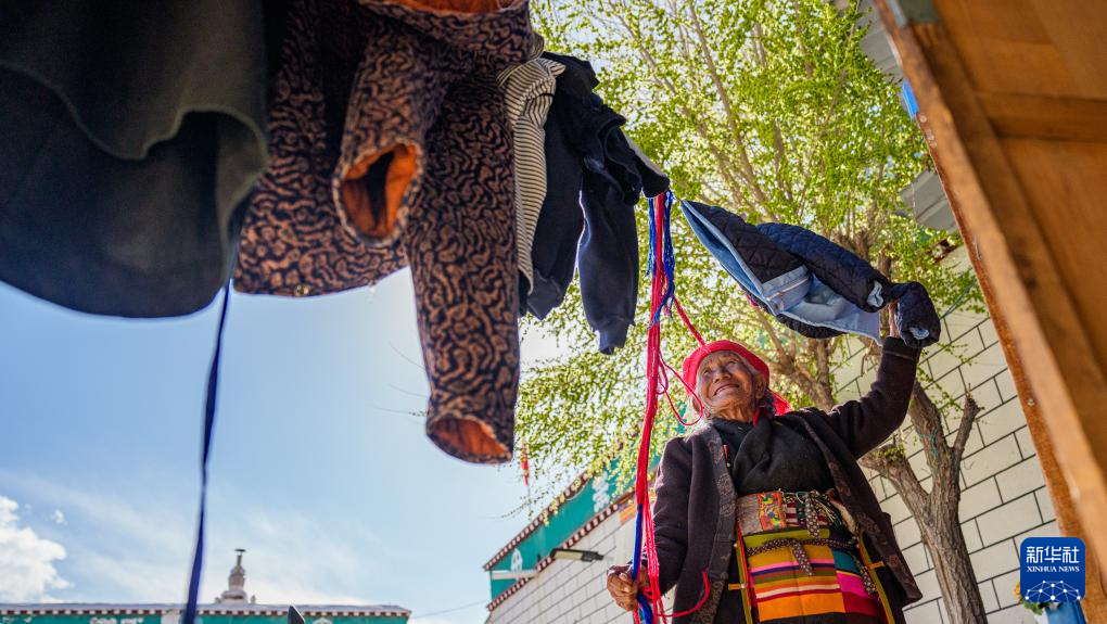 嘎多在家里晾曬衣服(3月25日攝)。新華社記者 丁增尼達(dá) 攝
