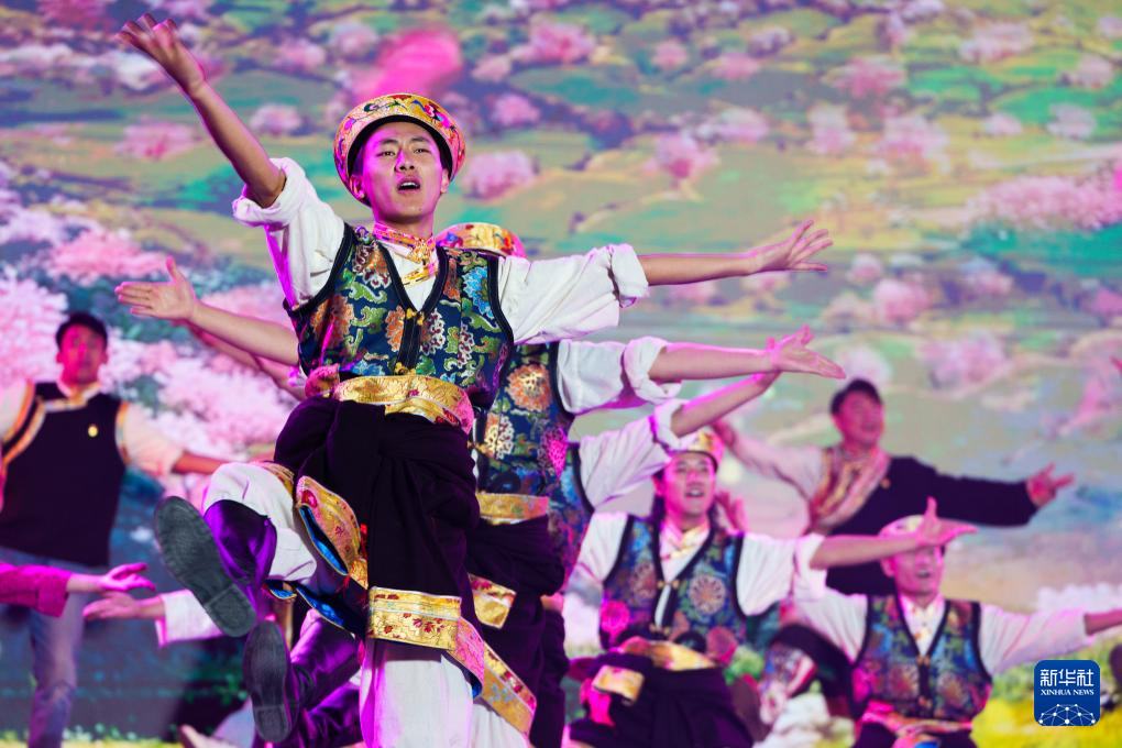 這是4月3日拍攝的林芝第二十三屆桃花旅游文化節(jié)開幕式文藝演出現(xiàn)場(chǎng)。新華社記者 丁增尼達(dá) 攝