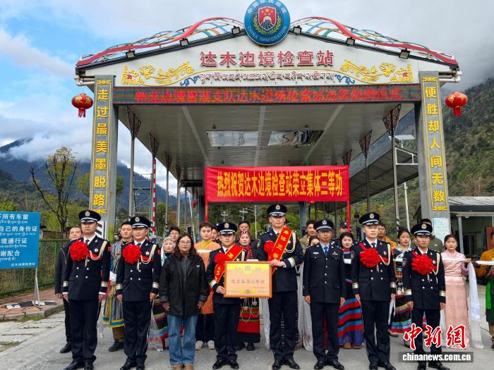 圖為林芝邊境管理支隊送獎小組為達木邊境檢查站集體三等功頒發(fā)證書。林芝邊境管理支隊供圖