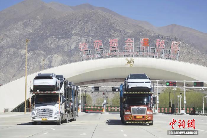 圖為拉薩綜合保稅區(qū)貨車滿載而出。拉薩海關(guān) 供圖