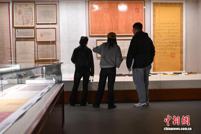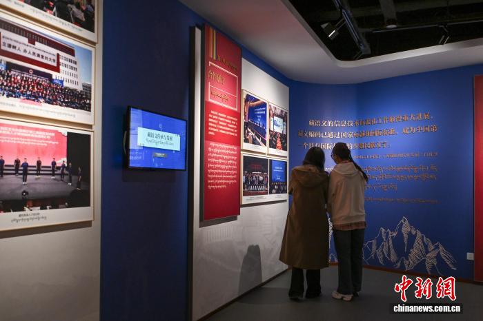 4月28日,記者實(shí)地探訪西藏藏語言文字館,該館是全中國首個藏語言文字專題展館。展館共設(shè)藏語言文字的起源與演變、藏語言文字的學(xué)習(xí)和使用、藏語言文字的傳承與保護(hù)3大部分10個板塊,目前館藏珍貴展品3000余件。圖為市民在參觀西藏藏語言文字館。中新社記者 貢嘎來松 攝