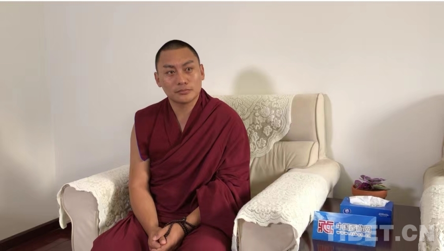 圖為根培活佛正在接受中國西藏網(wǎng)的采訪