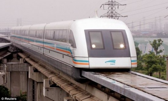 連接浦東機(jī)場(chǎng)和上海新金融區(qū)的國(guó)內(nèi)首列磁懸浮列車(chē)(圖片來(lái)源:央視網(wǎng))