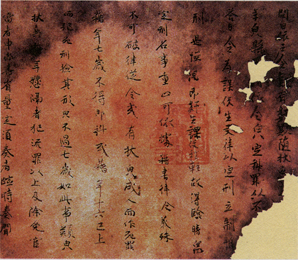 唐律在中國法制史上居于承前啟后的重要地位,以“得古今之平”著稱于世?!短坡墒枳h》在《貞觀律》基礎(chǔ)上修訂而成,為大唐盛世奠定了法律基石,充分體現(xiàn)了中國古代法律制度的水平、風(fēng)格和基本特征,成為中華法系的代表性法典之一。圖為《唐律疏議》殘片(局部)。