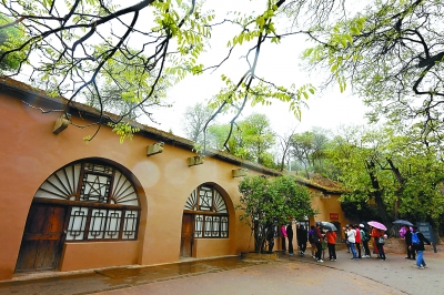 延安有中國(guó)保存最完整、面積最大的革命舊址群。圖為游客在陜西延安棗園革命舊址參觀。新華社發(fā)