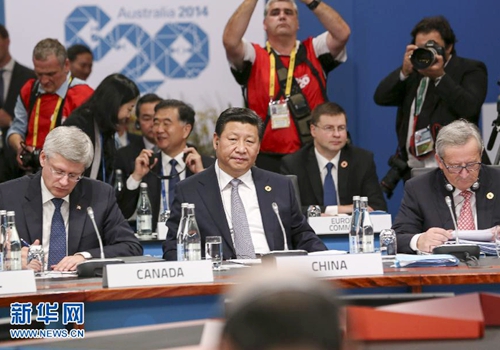 2014年11月15日,國家主席習(xí)近平出席在澳大利亞布里斯班舉行的二十國集團(tuán)領(lǐng)導(dǎo)人第九次峰會(huì),并在第一階段會(huì)議上作了題為《推動(dòng)創(chuàng)新發(fā)展 實(shí)現(xiàn)聯(lián)動(dòng)增長》的重要發(fā)言。