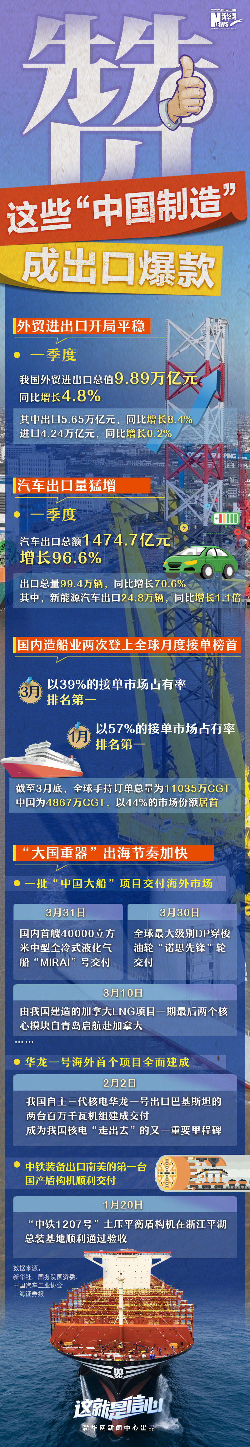 制造業(yè)是實(shí)體經(jīng)濟(jì)的重要組成部分。一季度,我國汽車、造船等制造業(yè)細(xì)分領(lǐng)域出海步伐加快,成績表現(xiàn)搶眼。