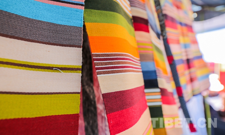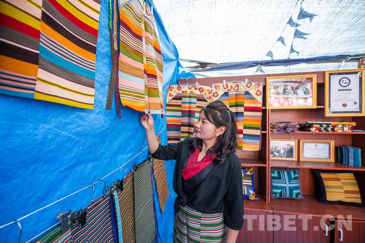 中國(guó)西藏網(wǎng)訊 10月13日,西藏自治區(qū)山南市貢嘎縣第二屆七彩邦典文化旅游節(jié)農(nóng)牧產(chǎn)品展銷會(huì)的現(xiàn)場(chǎng),旦增卓嘎在推銷著自家制作的邦典(藏式圍裙),不大的展位前放著合作社制作的產(chǎn)品宣傳片和國(guó)家級(jí)非物質(zhì)文化遺產(chǎn)代表性項(xiàng)目藏族邦典、卡墊織造技藝的代表性傳承人證書(shū)。
