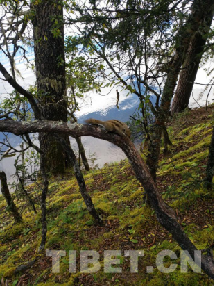 晨光如故,仍舊帶著雪山的寒意。普達(dá)措國家公園前,群山聳立向四周綿延,山上的植被茁壯繁茂。一種新奇的樹染紅了翠綠的森林,宛若女孩裙擺上的紅色花紋,讓高聳的大山多了幾分柔情。在山下的草原上,藏族群眾的房屋散落在公路兩旁,有些還飄著裊裊炊煙。入眼的一切,像故鄉(xiāng)新雨后的雨滴,嗒嗒地滴入心湖,濺起些旖旎的波紋,蕩及整個心房。