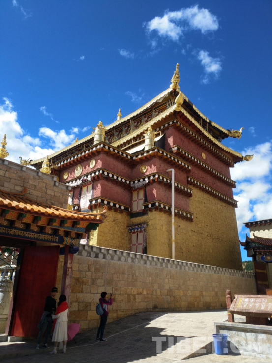 經(jīng)過一番跋涉后,有著“小布達(dá)拉宮”之稱的松贊林寺躍然眼前。寺院依山傍水,氣勢恢宏,就像一座古城堡,在陽光的輝耀下,金碧輝煌。