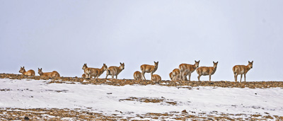 雙湖縣2/3的國土面積是“無人區(qū)”,禁止放牧、旅游等人類活動。這塊連說話都喘粗氣的“禁區(qū)”,卻是野生動物真正的樂園。據雙湖縣森林公安局局長古熱次仁介紹,生活在雙湖境內的國家一級保護動物藏羚羊有10萬頭左右、野牦牛近2萬頭。