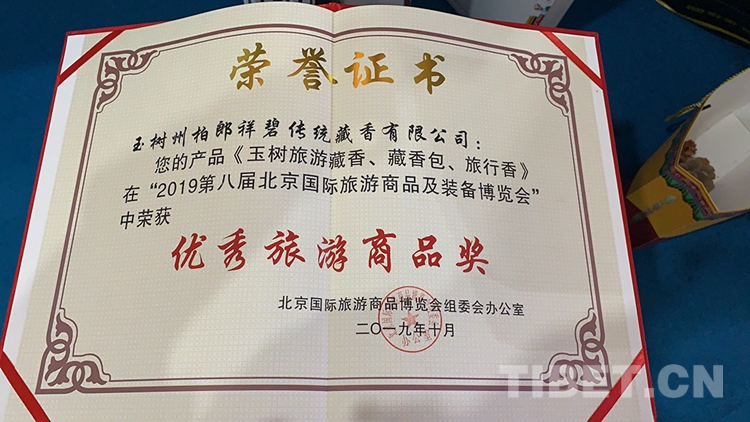 中國(guó)西藏網(wǎng)訊 近日,在第八屆北京國(guó)際旅游商品及旅游裝備博覽會(huì)上,來(lái)自青海玉樹(shù)藏族自治州的省級(jí)非物質(zhì)文化遺產(chǎn)代表性項(xiàng)目柏郎祥碧傳統(tǒng)藏香系列產(chǎn)品玉樹(shù)旅游藏香、藏香包、旅行香榮獲優(yōu)秀旅游商品獎(jiǎng)。