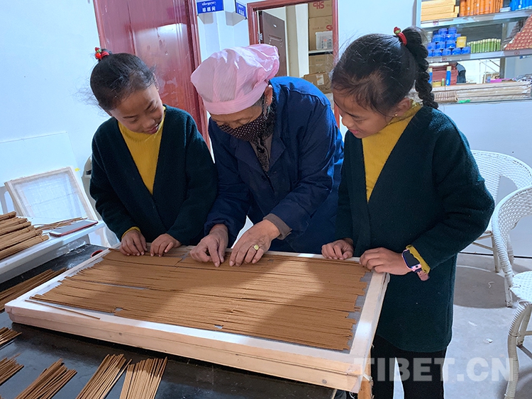 圖為南卡的兩個(gè)外孫女利用周末時(shí)間了解藏香知識(shí)