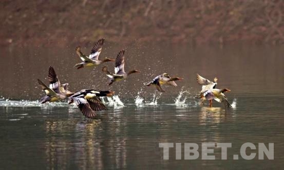 中國(guó)西藏網(wǎng)訊 漫步于湖南省常德市桃源縣沅水國(guó)家濕地公園,只見(jiàn)清澈的江面上點(diǎn)綴著沙洲,隨著江水的緩緩流動(dòng),魚群也輕快地游動(dòng)。透過(guò)岸邊的望遠(yuǎn)鏡,能夠看到一群長(zhǎng)著黑色頭部、紅色嘴巴、翅膀后勾勒有魚鱗狀斑紋的中華秋沙鴨正在此嬉戲。每年冬天,這群美麗生靈都會(huì)飛越大半個(gè)中國(guó),相約在此度過(guò)漫長(zhǎng)冬季。
